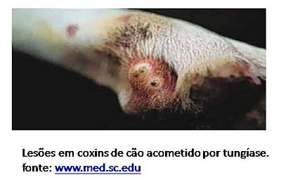 O animal acometido e o homem sentem coceira e dor para andar. As lesões desencadeadas pelo parasita podem servir como porta de entrada para outras infecções, como o tétano, que é bastante grave.