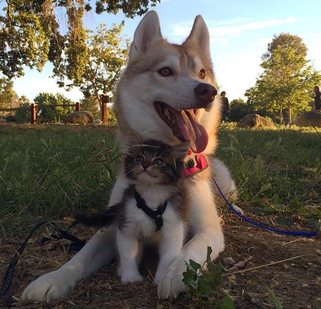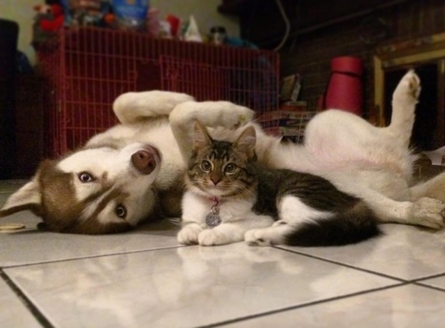 O caso mais recente é o da cumplicidade e parceria que surgiram entre a gatinha Rosie e a husky siberiana Lilo. Com apenas três semanas de vida, Rosie foi encontrada em péssimo estado de saúde pela família da cadela, que não esperava o nascimento de uma amizade entre as espécies.