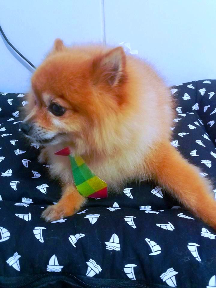 Ele é da raça Lulu da Pomerânia, e é conhecido também como Spitz Alemão.