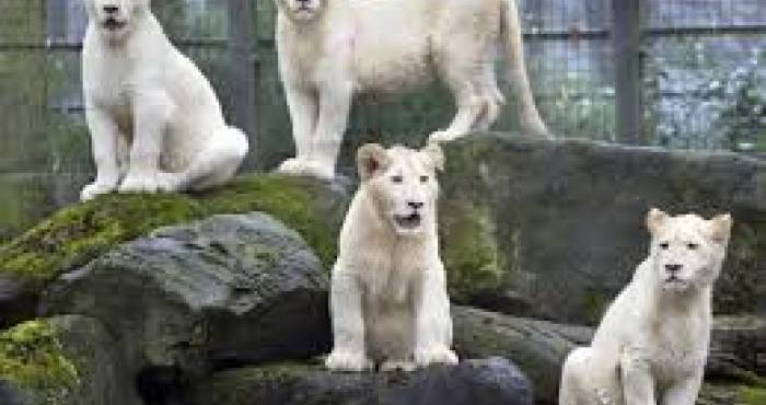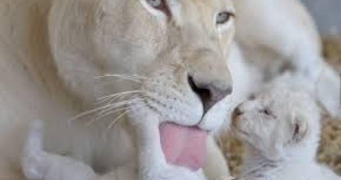 Leões brancos não são albinos. Sua cor branca é causada por um gene inibidor recessivo, diferente do gene do albinismo. Eles variam de loiro por quase branco.