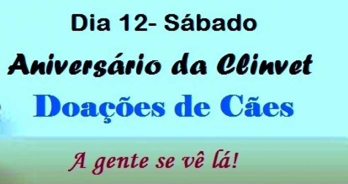 Neste sábado, 12, a partir das 09:00 da manhã, a clínica veterinária Clinvet, em tabira estará em festa. Acontece a comemoração dos 16 anos da clínica, e para isso muita coisa legal está programada.O acontecimento terá doações de cães, com a organização da A Associação Municipal de Proteção Animal da Região de Itabira, AMPARI. De acordo com Dr. Alexandre Pereira 'um laboratório irá fazer uma promoção de lançamento de um antipulgas e vermifugação gratuita dos cães que forem adotados no dia do evento, haverá representantes do laboratório tirando duvidas do público em geral'- explica.