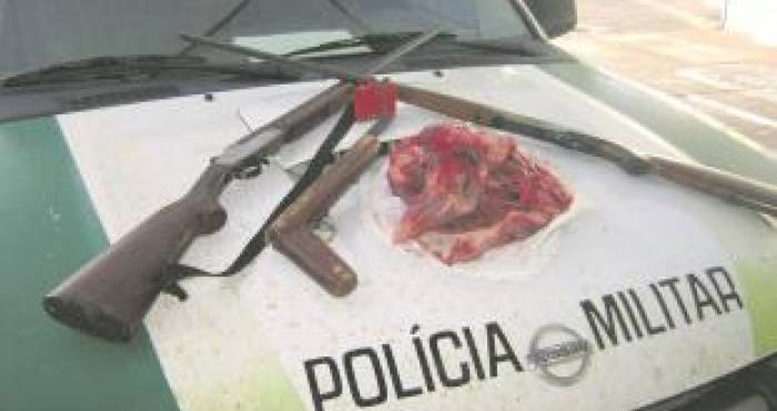 Com a dupla os policiais militares encontraram uma espingarda calibre 28 e outra 32, além de uma garrucha do mesmo calibre. Dentro do carro que pertence a um dos suspeitos foram encontrados alguns quilos de carne de porco-do-mato, animal comum na região, de acordo com a Polícia Ambiental.