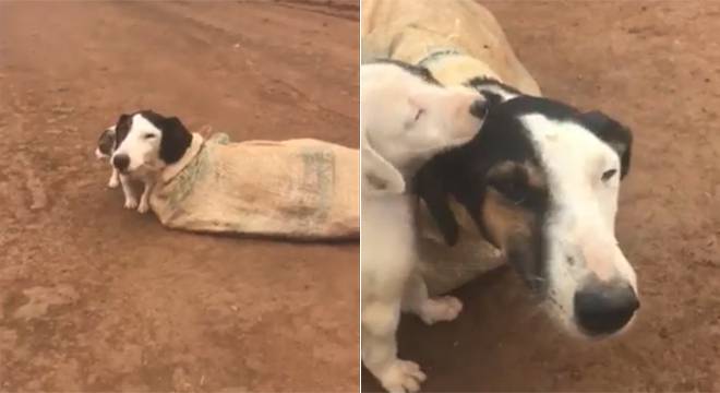 "Umas das piores cenas de maus tratos que já presenciei! Se não tiver forças não veja! Mãe doente com filhotes amarrados num saco e jogados no meio do nada! Pelo visto está lá a bastante tempo! Filhotes tontos e fracos devido à falta de ar e mãe sangrando muito! Que covardia! Que pecado mas Deus vai cobrar isso eu tenho certeza", escreveu.